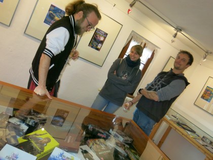 (Da die Bedeutsamkeit des historischen Moments, der erste Indie-Gemeinschaftsstand auf einer Messe überhaupt, nicht erkannt wird, werden bedauerlicherweise nur Fotos vom Blitz-BASIC-Stand gemacht.)